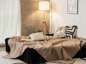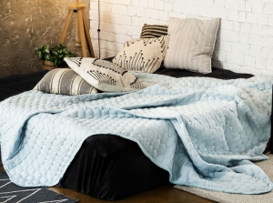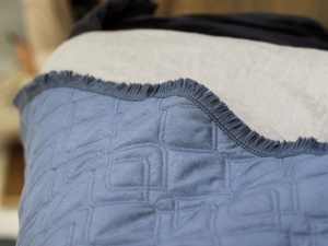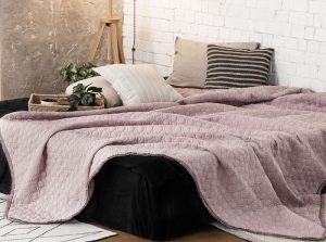Покрывало простегано фигурной стежкой. Рисунок стежки отличается в зависимости от расцветки покрывала. Края покрывала обработаны декоративной бахромой.