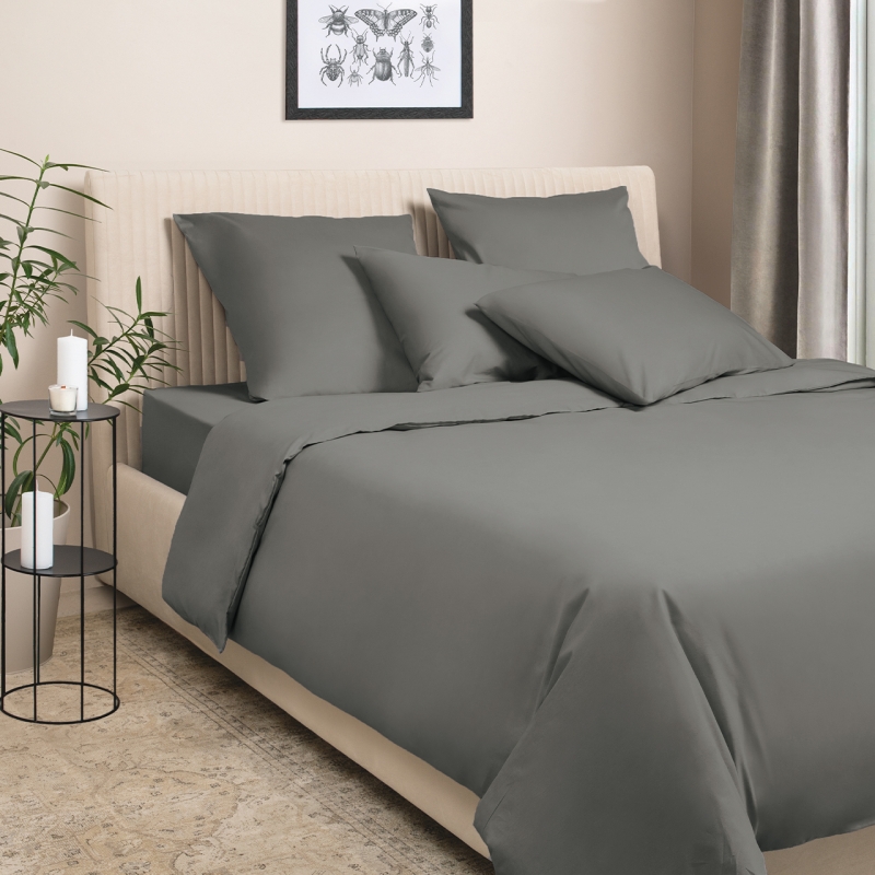 Постельное белье сатин-премиум Моноспейс серо-голубой