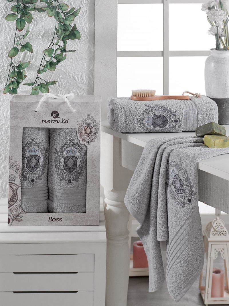 Главная -> Каталог -> Турецкие полотенца оптом -> Наборы полотенец в подарочной упаковке -> Турецкий комплект полотенец махровых MERZUKA BOSS 2шт арт.9807