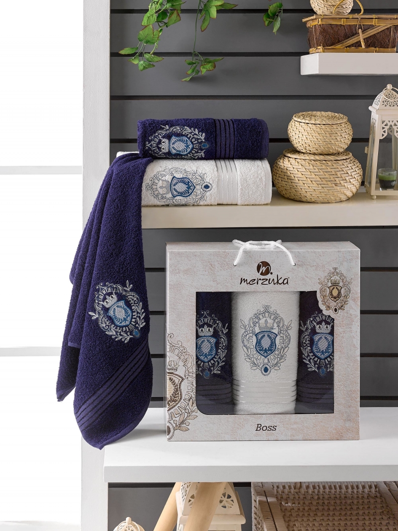 Главная -> Каталог -> Турецкие полотенца оптом -> Наборы полотенец в подарочной упаковке -> Турецкий комплект полотенец махровых MERZUKA BOSS 3шт арт.10056