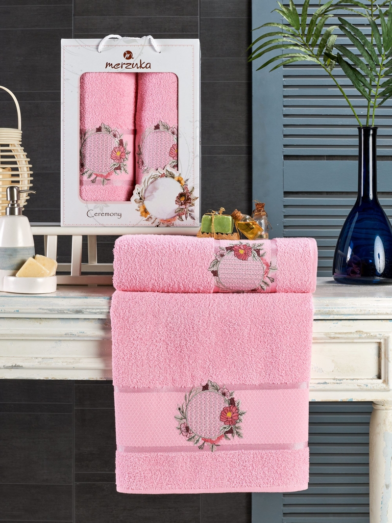 Главная -> Каталог -> Турецкие полотенца оптом -> Наборы полотенец в подарочной упаковке -> Турецкий комплект полотенец махровых MERZUKA CEREMONY 2шт арт.11776