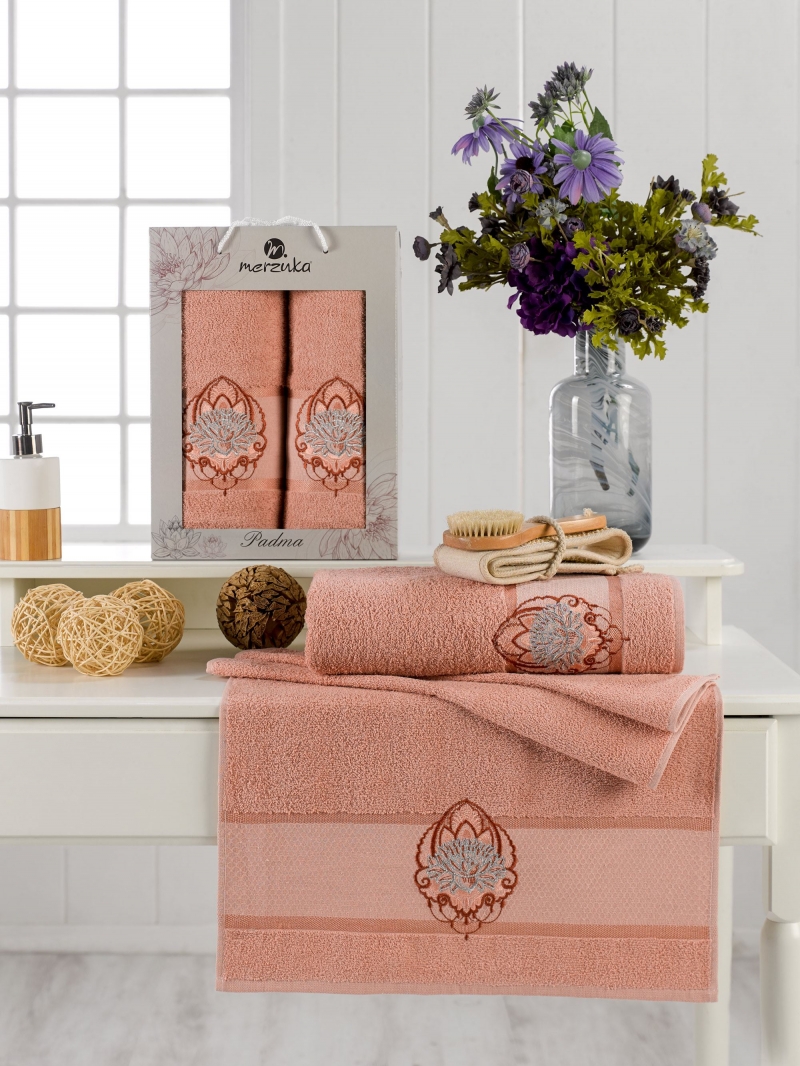 Главная -> Каталог -> Турецкие полотенца оптом -> Наборы полотенец в подарочной упаковке -> Турецкий комплект полотенец махровых MERZUKA PADMA 2шт арт.11637