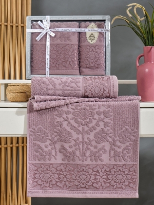 Главная -> Каталог -> Турецкие полотенца оптом -> Наборы полотенец в подарочной упаковке -> Турецкий комплект полотенец махровых жаккард PHILIPPUS LYDIA 2шт арт.12370